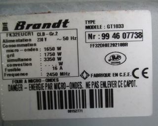 Vds four micro ondes de la marque BRANDT. Cuve entièrement en inox, avec plateau tournant. programme de cuisson par plat. Préréglage , très pratique? Dim encombrement : Longue