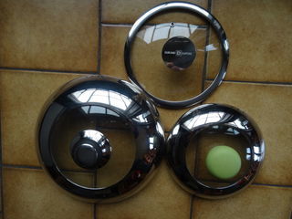 - un couvercle de casserole ou sauteuse en verre neuf de marque Durant Dupont Ø 17.5 cm :5 euros - un couvercle de casserole ou sauteuse en verre et inox déjà servi avec u