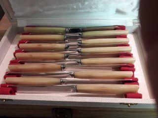 12 Couteaux manche imitation ivoire dans boite de rangement