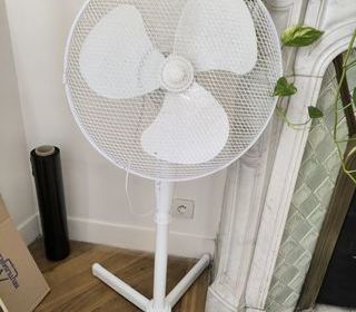 Ventilateur sur pied Monoprix, en très bon état, utilisé seulement une semaine puis soigneusement rangé dans une cabine d'armoire. Fonctionnel, stable et discret, il offre une vent