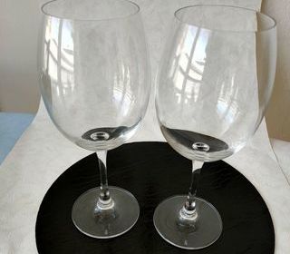 2 verres de dégustation de vin d'une grande pureté permettant l'observation parfaite de la robe du vin. Jambe fine et élégante. Bord fin, doux aux lèvres. Contenance : 50 cl- Haut