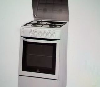 Cuisiniere mixte Indesit 3 feux gaz 1 plaque electrique Allumage electrique Four electrique Grill Lèche frite Coffre de rangement