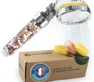 urgent - Vends Pommeau de douche avec réduction d'eau composé de billes minérales filtrantes - AECODUNE - Marque Française Je déménage et vends ce pommeau de douche avec filtre