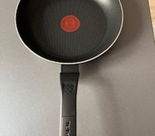 Poêle antiadhésive noire avec manche en plastique résistant à la chaleur. Idéale pour la cuisson de divers aliments. Achetée au début du mois de septembre. Jamais utilisée mais lav