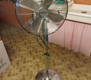 Ventilateur sur pied de marque Elsay, chromé. 1,50m de hauteur - 3 vitesses à variation 180°
