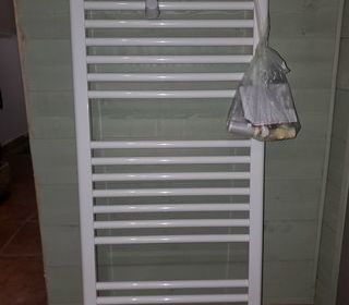 Sèche serviette électrique 2 000 W avec entretoise de fixation et notice. Règlement en direct.