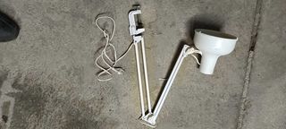 Lampe articulé pour bureau ou atelier en métal blanc .Fixation très simple a l'embase de la lampe. Ampoule fournie.