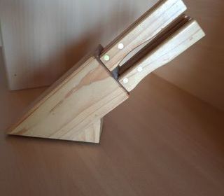 Présentoir avec 6 couteaux jamais servis. H 18 L 26