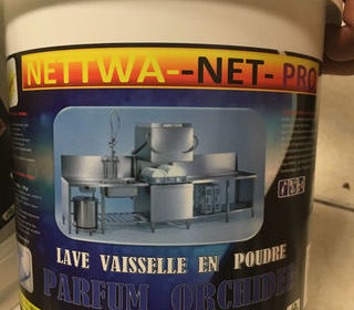 Poudre de lavage qualité professionnelle pour Lave-vaisselle restauration collective ou domestique, de la marque NETTWA-NET-PRO, parfum orchidée ou lavande. La gamme de poudre l