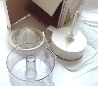 Presse-agrumes neuf de voyage, pour le camping, le caravaning, complet avec son adaptateur DC en 6 V (sortie 9 VDC - 200 mA), fonctionne aussi sur 4 piles AA. Information : Vend