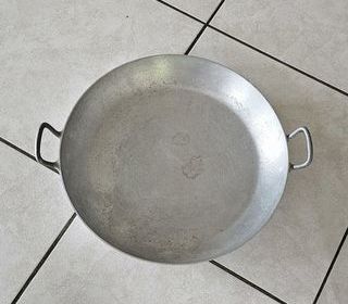plat à paella en aluminium de marque Tournus 23 cm intérieur, 40 cm extérieur