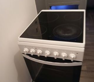 Cuisiniere noire et blanche vitroceramique une plaque est raillee mais fonctionne tout le reste fonctionne très bien je ne fais pas d envoi