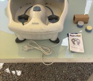 Appareil électrique Hydro Spa Plus de marque babyliss modèle 8033E pour bain de pied, massages. Appareil à 3 programmes avec 3 accessoires rotatifs interchangeables : masseur,