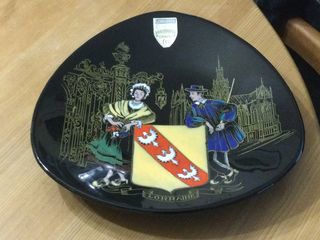 Assiette décorative LORRAINE en faïence Longwy Assiette décorative triangulaire longwy grand feu décorée à la main des années 60/70 Modèle 3522 made in France Dimensions e
