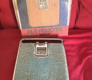 Pèse personne mécanique vintage tout en métal de marque TESTUT. Pèse de 10 à 120 kg Pèse personne qui fonctionne, juste à nettoyer Photos supplémentaires sur demande si inté