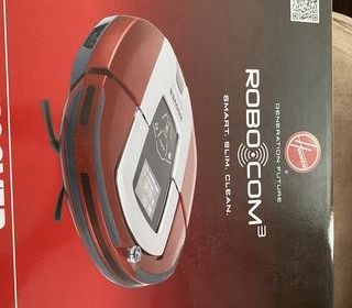 Aspirateur robot Hoover RoboCom3, couleur rouge, livré dans sa boîte d'origine.