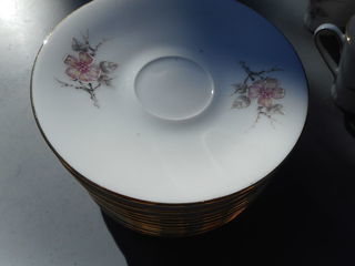 Service à café neuf en porcelaine. Fabrtiqué en Allemagne (Bavière) de marqueScherzen. Composé de 10 tasses à café et de ses 10 sous-tasses. Décorées avec un fil doré. Jamais s