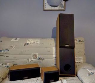 Deux enceintes amplifiée marque tannoy reveal 402 plus petite table de en trés bon état prix débattre vente aussi possible d'une platine laser marque technics.