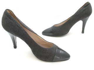 ESCARPINS CHANEL AUTHENTIQUES TAILLE 38 DE COULEUR GRIS ET NOIR CUIR NOIR ET FLANELLE TWEED GRIS FONCE TALONS : 10 CM PATINS + TOPY REFAITS PAR UN CORDONNIER BO