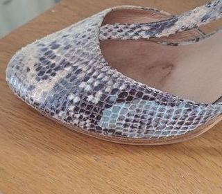 Chaussures comme neuves pointure 37 haut talons couleur imitation pyton bleue et beige..