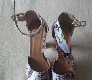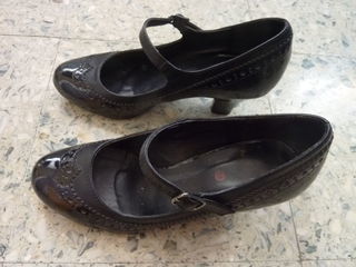 Je vends cette jolie paire d'escarpins noirs, à brides. Ils sont vernis, à motif "fleuri" et ont un talon de 6 cm. Très peu portés, ils sont en excellent état.