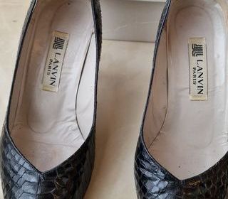 Escarpins vintage marque Lanvin en croco, état satisfaisant, déjà porté.