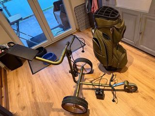 JuCad Carbon Travel Verde Rosé 2.0 Top état Avec sac et étiquette Avec facture GolfHouse 22/08 Pack technologique intégré 2.0 avec frein de stationnement électronique des deux
