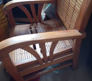 Pièce unique, fabriqué à Pondichéry sur commande, en 2000. Hauteur réglable avec vis centrale. Assise profonde 45 cm, largeur 68 cm