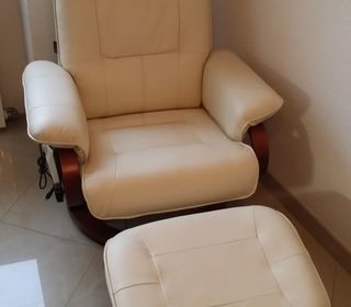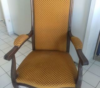 objets en très bon état, en tissu avec accoudoirs, gris clair à l'extérieur, beige à l'intérieur, peuvent se vendre deux par deux. les pieds présentent des protections sur mesure