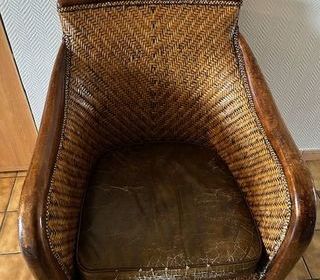 Bonjour Nous vendons un salon en cuir qui comporte 2 banquettes 2/3 places et 2 fauteuils façon club coloris marron. Pieds en bois Bon état
