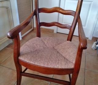 Type : Canapé, fauteuil Fauteuil rustique assise en osier , en très bon état