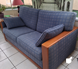 Divan convertible et son fauteuil bois et tissu bleu fauteuil: l: 76 prof 85 h: 86 divan: L: 180 prof: 90 h:90 assise:45