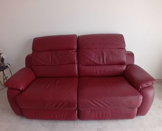 Canapé 3 places dont un côté électrique + fauteuil électrique. Tetieres rabattables et inclinables. Couleur bordeaux marque cuir centre. Très bon état.