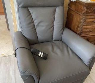 Fauteuil relaxe avec commande électrique de relevage des pieds et de l'assise simili cuir gris état impeccable il n'a presque pas été utilisé. à€ retirer sur place. Acheté 400 euro