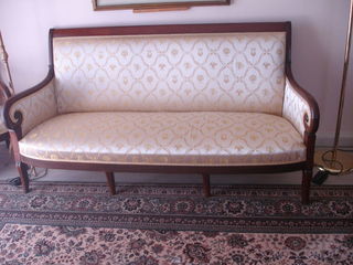 Vends, pour cause déménagement, un canapé et 3 fauteuils, époque Restauration, en acajou avec accoudoirs à crosses . Excellent état .