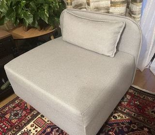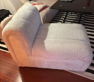 Nous vendons notre fauteuil que nous avons acheté il y a un mois seulement. Il est neuf et très confortable. De couleur crème en velours molletonné, il se mariera parfaitement av