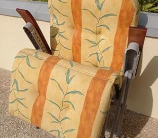 en retraite j'ai 4 chaises- fauteuil rétro en bon état, en merisier assise tissu, visibles en dépôt vente, ( brocante gentibroc ) 162 rue Gabriel Péri 94250 Gentilly, ouvert du mar