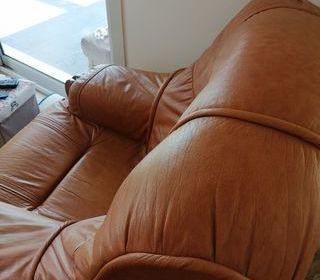 fauteuil en cuir design et élégant acheté il y a quelques années chez Cuir center. Coloris marron chocolat taupe et matière de très belle qualité (cuir de vachette neuf toujou