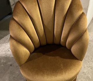 Fauteuil en velours dore estime a 250 euros par professionnel. En forme de coquille, il fera son petit effet dans votre interieur. Modele rare et ancien