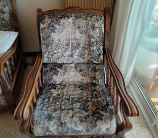 Vends 2 fauteuils en bois et en velours.Les mesures sont longueur 78 cm , largeur 70 cm, hauteur 97 cm