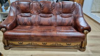 Ensemble canapé cuir complet un 3 places + 2 fauteuils en très bon état sans tâche sans rayure très peu servi.