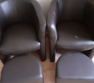 Deux fauteuil marron avec un dessous pour poser les pieds, quelques craquelures ,à venir chercher sur place.