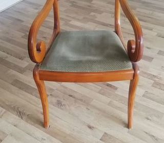 FAUTEUIL BOIS HAUT :75 cm LARG : 52 cm PROF : 52 cm .BON ETAT . A PRENDRE SUR PLACE A CORBAS .