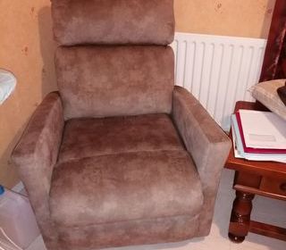 fauteuil en tissu couleur beige avec réglage pour les jambes ainsi pour le dos a prendre sur place