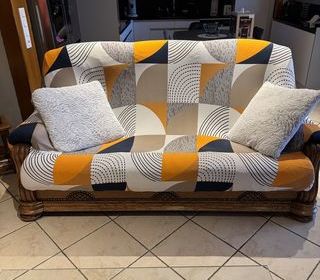 Vends canapé 3 places cuir bois et 2 fauteuils en bon état . A venir récupérer sur place