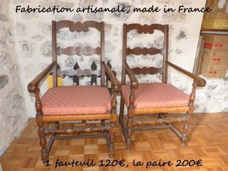 Cause déménagement (fini et stocké chez des amis) FAUTEUILS Fabriqués par un artisan ébéniste de Lamastre (estampille CHALEAC, Ardèche) Age minimum 50 ans Bois massif Chev