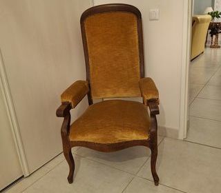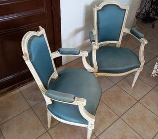 Paire fauteuils anciens type restauration. Très bon état, garniture refaite, assise confortable. Idéal pour les amateurs de mobilier ancien ou intérieur de caractère. Remise en