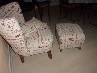 fauteuil scandinave beige imprimé "I Love you" avec repose pieds et coussin assorti