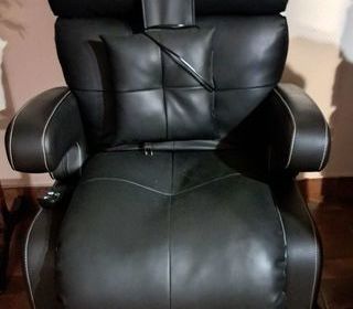 Fauteuil Cocoon simili cuir noir releveur, règlable é profondeur assise + accessoires (porte revue, accoudoirs règlables) Etat neuf jamais utilisé Documentation disponible A