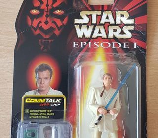 figurine star wars starwars hasbro épisode 1 obi-wan kenobi avec accessoire sabre laser et puce commtalk emballage d'origine scellé en état moyen
